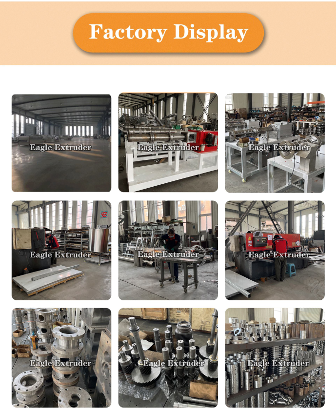 According to the client's different requirements, we could offer the whole complete processing line for all kinds of expanded snacks, core filled snacks, breakfast cereals/corn flakes, nutrition powder, artificial rice, bread crumbs, soya proteins, and pet food, fish feed and animal feed etc.